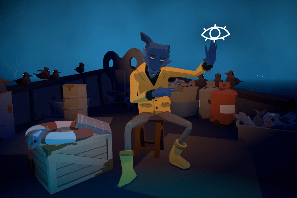 This game is entirely controlled by your eyes. Which utilizes the new eye tracking feature of the headset. Every time you blink, time moves forward. You relive the life of a soul fished from the underworld